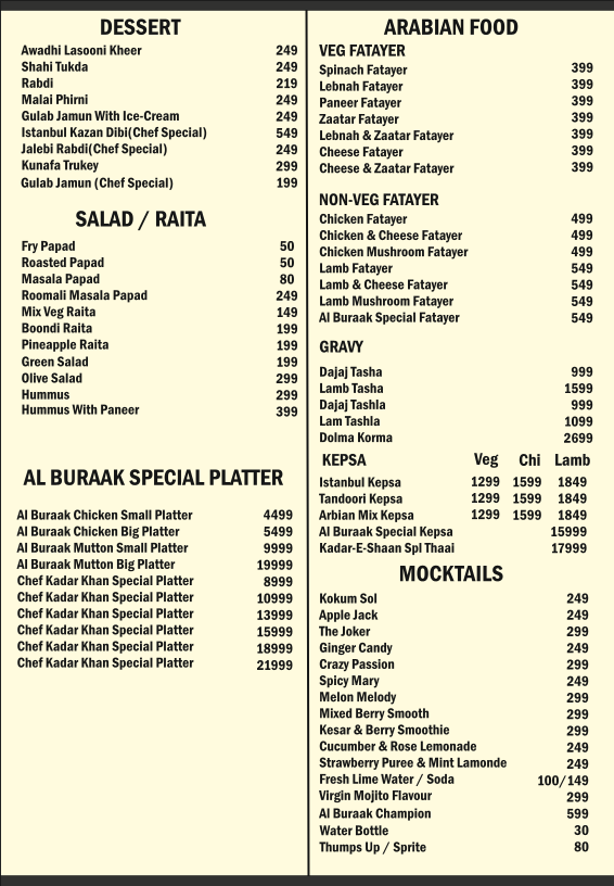 Introducing the Menu at AL BURAAK
